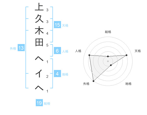 上久木田 ヘイヘさんを姓名の画数から五運を鑑定