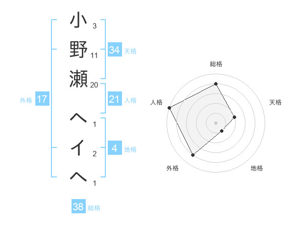 小野瀬 ヘイヘさんの総格は38画の4点!