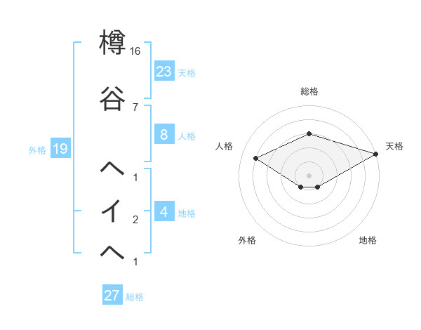 樽谷 ヘイヘさんの総格は27画の3点!
