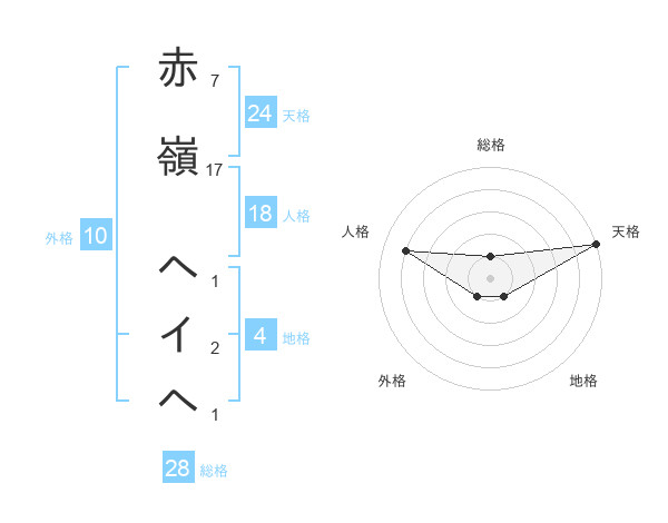 赤嶺 ヘイヘさんの天格は24画の5点!