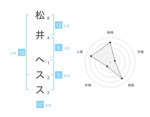 松井 ヘススさんを姓名の画数から五運を鑑定