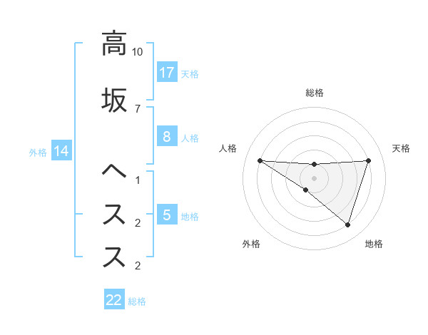 高坂 ヘススさんを姓名の画数から五運を鑑定