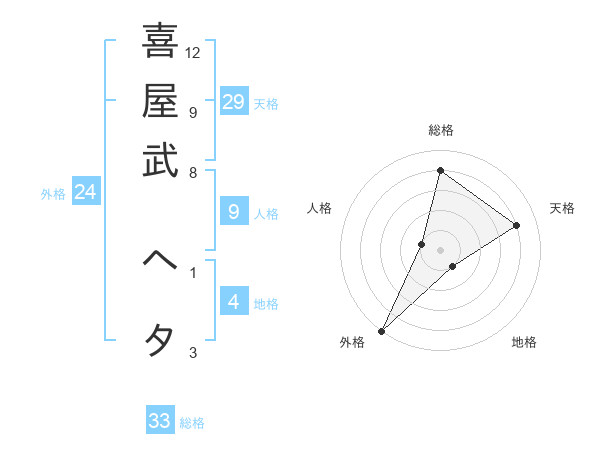 喜屋武 ヘタさんを姓名の画数から五運を鑑定
