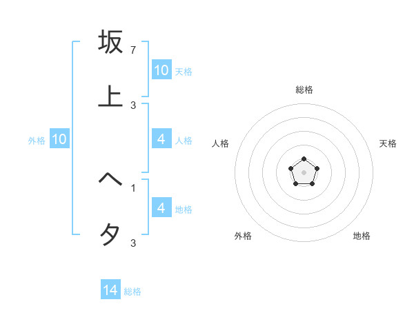 坂上 ヘタさんの総格は14画の1点!