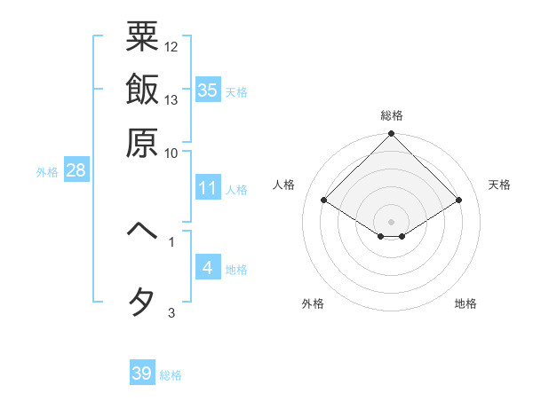 粟飯原 ヘタさんの総格は39画の5点!