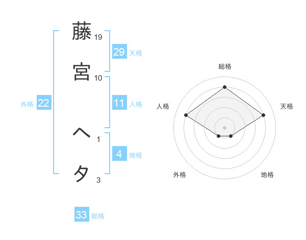 藤宮 ヘタさんを姓名の画数から五運を鑑定