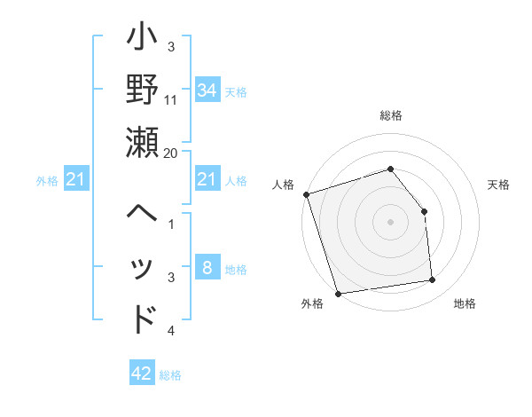小野瀬 ヘッドさんを姓名の画数から五運を鑑定