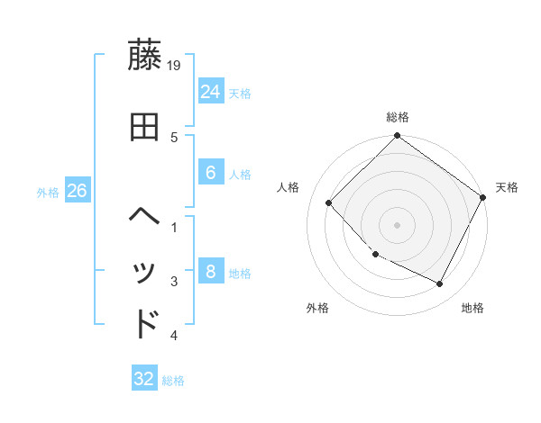 藤田 ヘッドさんを姓名の画数から五運を鑑定