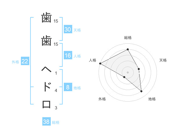 歯歯 ヘドロさんの外格は22画の1点!