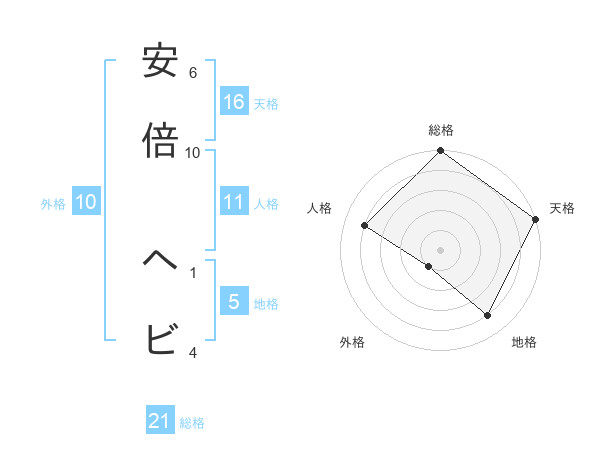 安倍 ヘビさんを姓名の画数から五運を鑑定