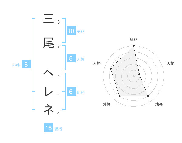 三尾 ヘレネさんの総格は16画の5点!