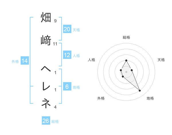 畑﨑 ヘレネさんの総格は26画の2点!