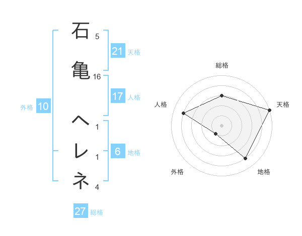 石亀 ヘレネさんを姓名の画数から五運を鑑定