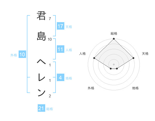 君島 ヘレンさんを姓名の画数から五運を鑑定