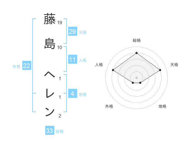 藤島 ヘレンさんを姓名の画数から五運を鑑定