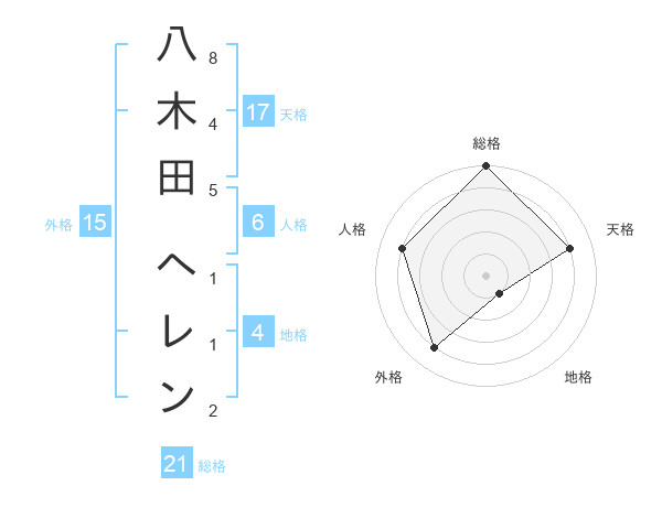 八木田 ヘレンさんの総格は21画の5点!
