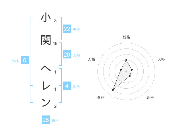 小関 ヘレンさんを姓名の画数から五運を鑑定