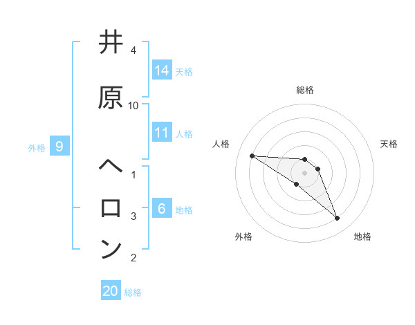 井原 ヘロンさんの総格は20画の1点