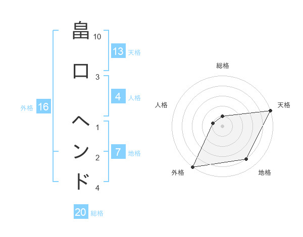 畠口 ヘンドさんの総格は20画の1点!
