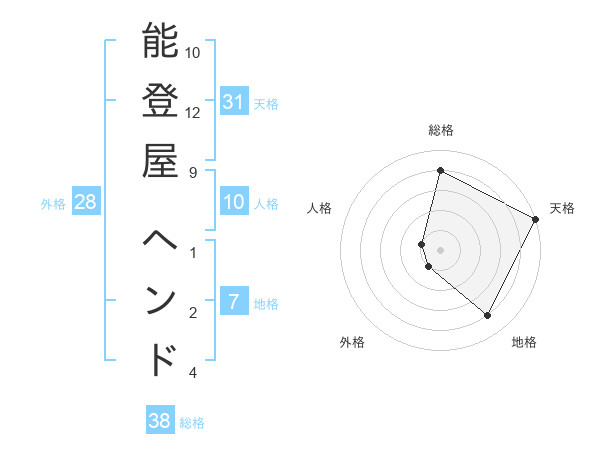 能登屋 ヘンドさんの総格は38画の4点!