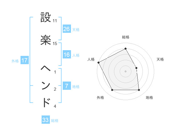 設楽 ヘンドさんを姓名の画数から五運を鑑定