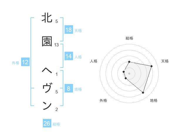 北園 ヘヴンさんを姓名の画数から五運を鑑定