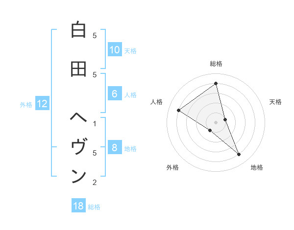 白田 ヘヴンさんを姓名の画数から五運を鑑定