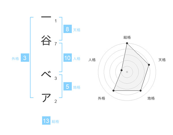 一谷 ベアさんの総格は13画の5点!