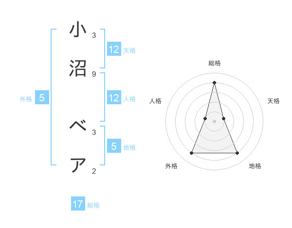 小沼 ベアさんを姓名の画数から五運を鑑定