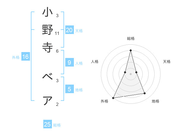 小野寺 ベアさんの総格は25画の4点!