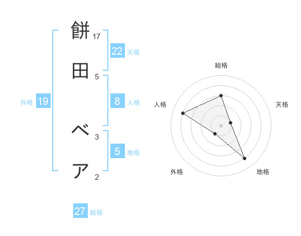 餅田 ベアさんを姓名の画数から五運を鑑定