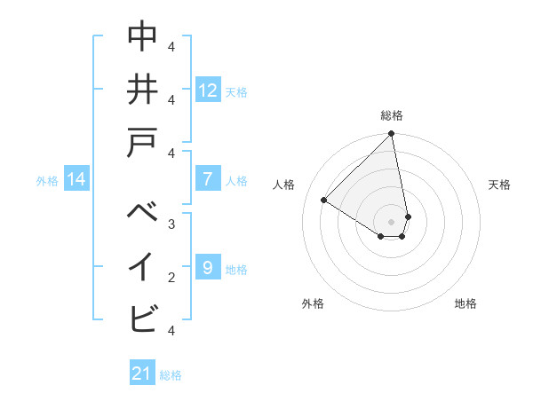 中井戸 ベイビさんの総格は21画の5点!