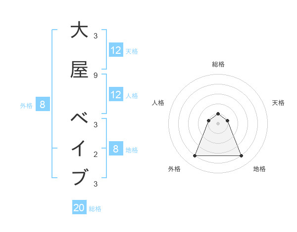 大屋 ベイブさんを姓名の画数から五運を鑑定