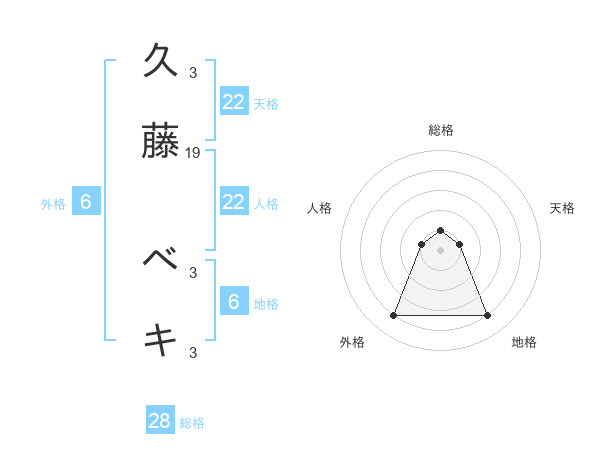 久藤 ベキさんの総格は28画の1点!
