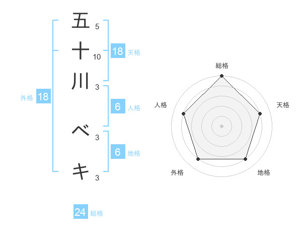 五十川 ベキさんを姓名の画数から五運を鑑定