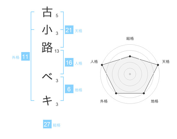 古小路 ベキさんを姓名の画数から五運を鑑定