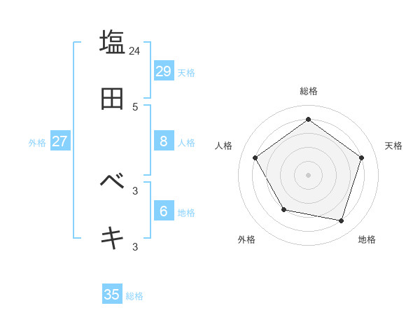 塩田 ベキさんの総格は35画の4点!