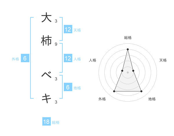 大柿 ベキさんの天格は12画の1点!