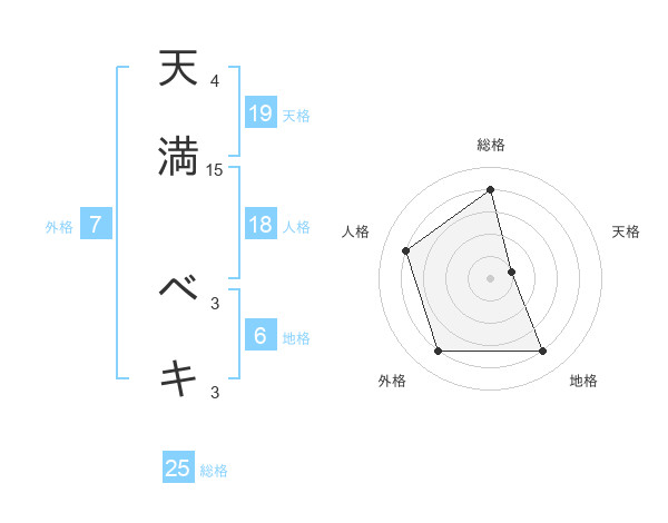 天満 ベキさんの総格は25画の4点!