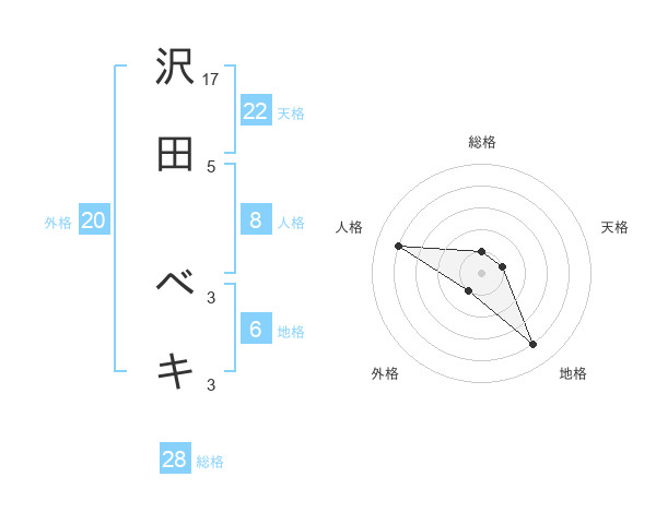 沢田 ベキさんを姓名の画数から五運を鑑定
