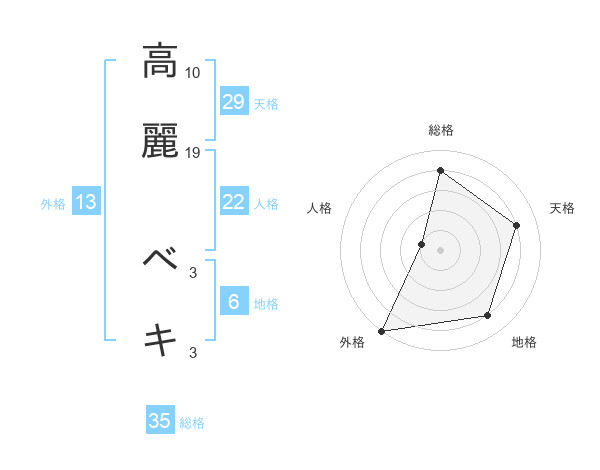 高麗 ベキさんの総格は35画の4点!