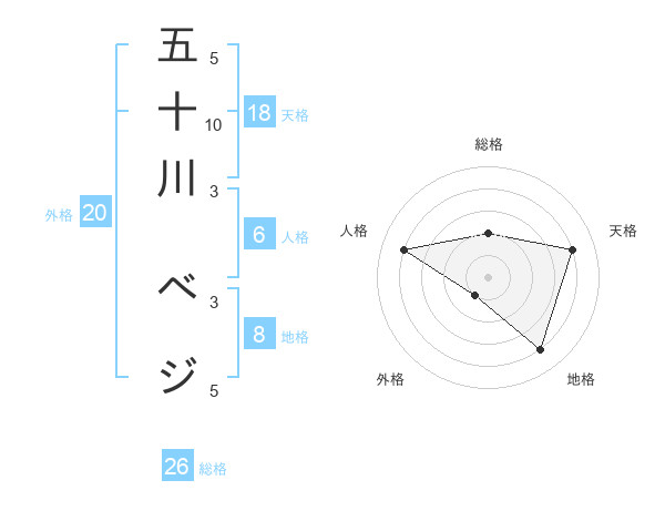五十川 ベジさんを姓名の画数から五運を鑑定