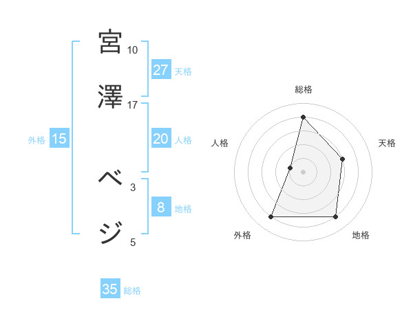 宮澤 ベジさんを姓名の画数から五運を鑑定