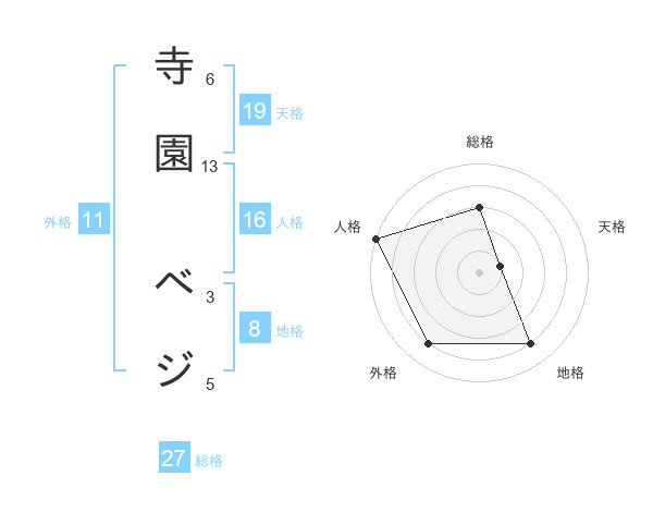 寺園 ベジさんを姓名の画数から五運を鑑定
