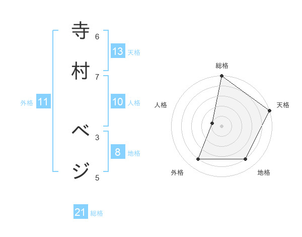 寺村 ベジさんの天格は13画の5点!