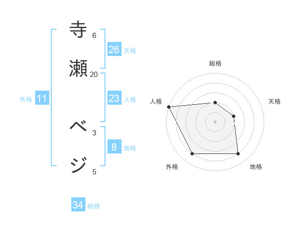寺瀬 ベジさんの天格は26画の2点!
