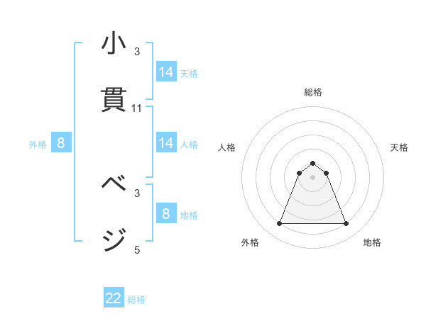 小貫 ベジさんの天格は14画の1点!