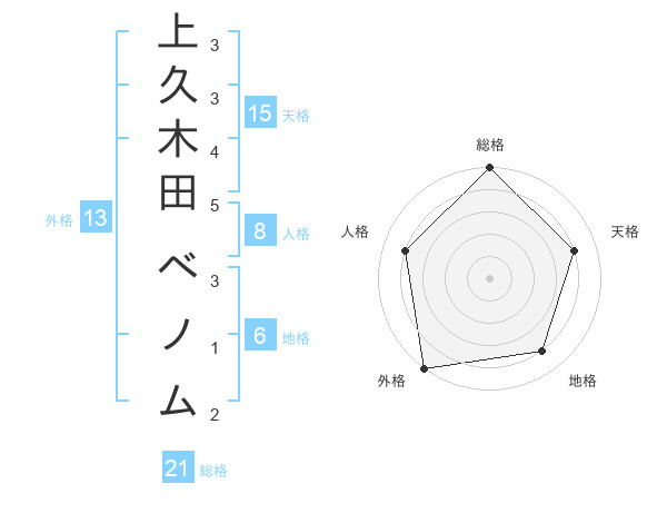 上久木田 ベノムさんを姓名の画数から五運を鑑定