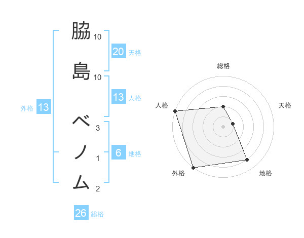 脇島 ベノムさんを姓名の画数から五運を鑑定