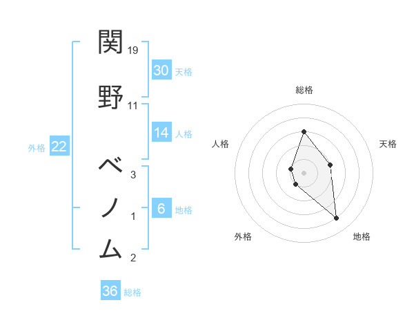 関野 ベノムさんを姓名の画数から五運を鑑定